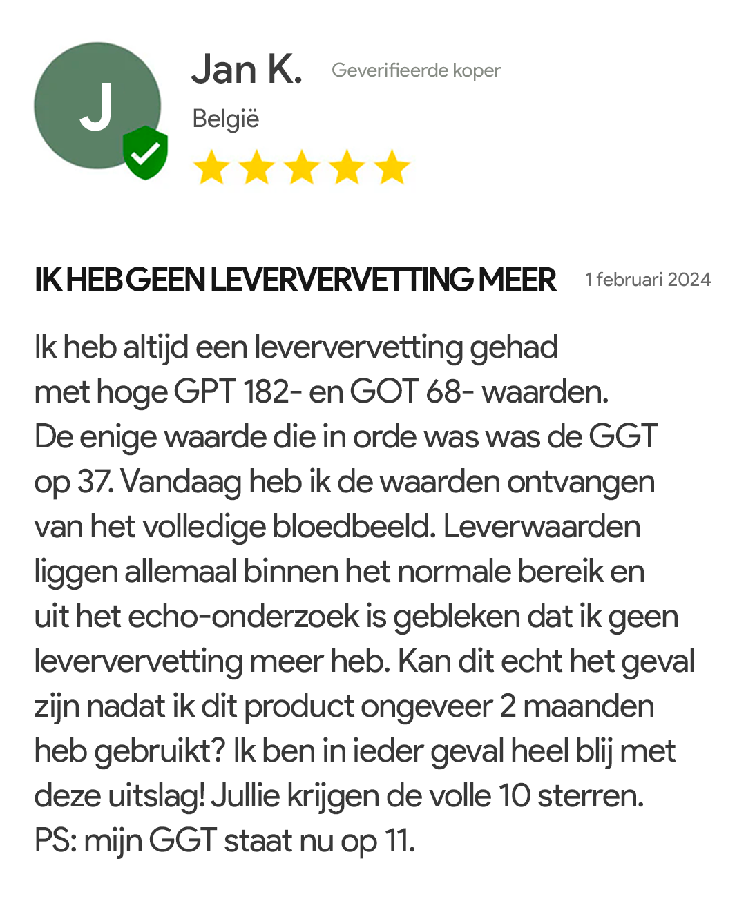 Het verrassende was echter de gamma GT-waarde, die 4 maanden geleden nog duidde op een vervette lever.