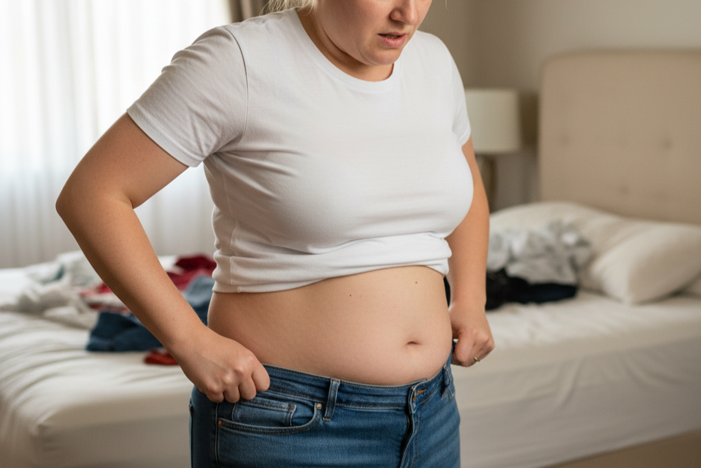 Your trousers feel tighter around the waist. Your skirts don't sit right. You notice thickness around your middle that wasn't there before, yet you've only gained 5-7 pounds on the scales.