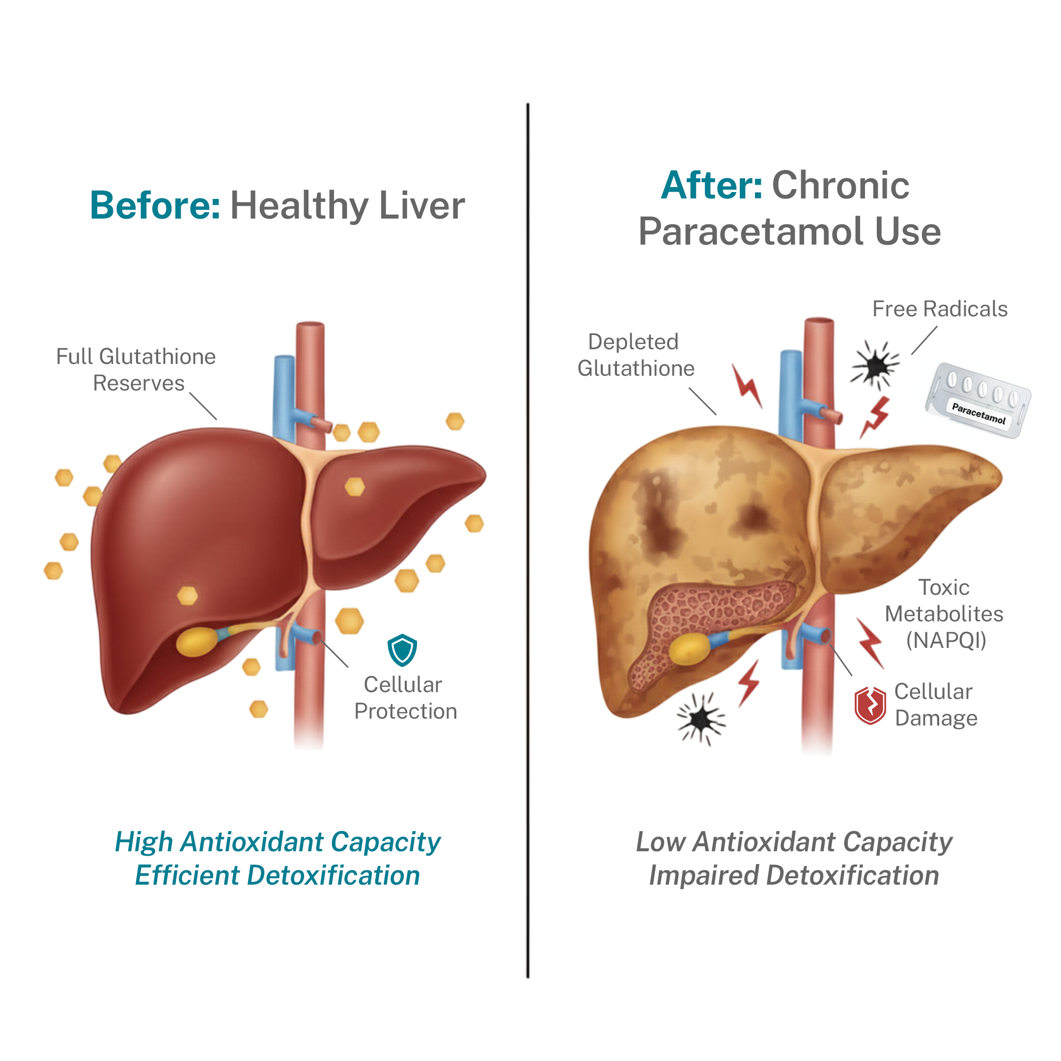 The evidence is clear: Regular paracetamol use depletes glutathione. Glutathione depletion leads to liver stress. Liver stress, over time, leads to damage.